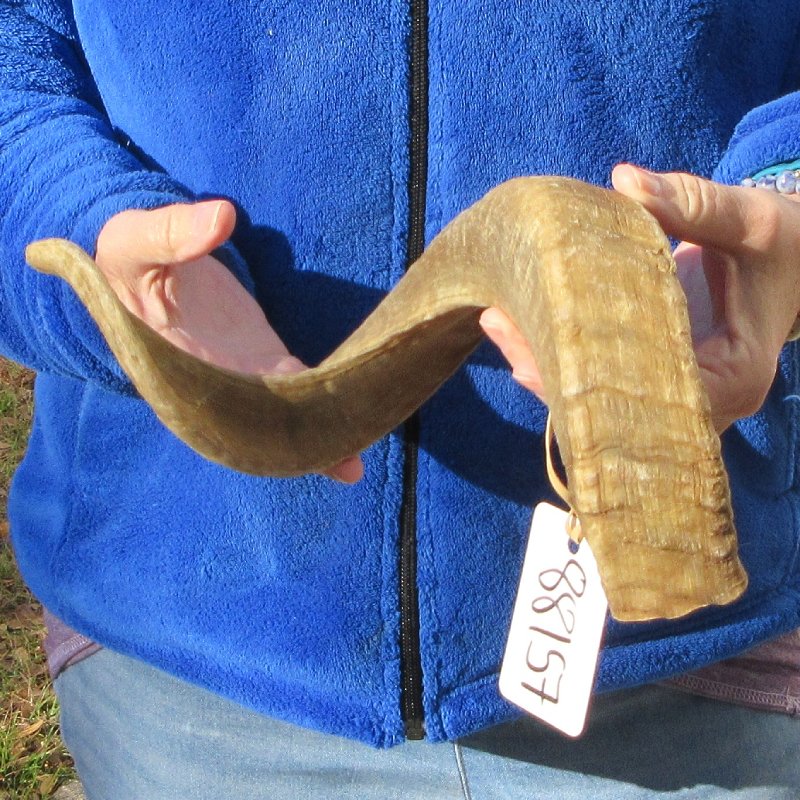 This sheep (Ovis Aries) horn measures approximately 21-1/2 inches in size. This sheep horn will have natural imperfections including, gouges, holes, splits, missing sections of top layer, etc. from aging and fighting.  Review photos. Sheep horns are measured around the curl of the horn - not straight. Sheep horns are used in making blowing horns, furniture legs, lamps, sconces, knife handles, cane handles, inlaid crafts and numerous other taxidermy crafts. Our ram horns are a by-product of the farming industry and Government culling programs. Our ram horns are imported from India and South Africa.