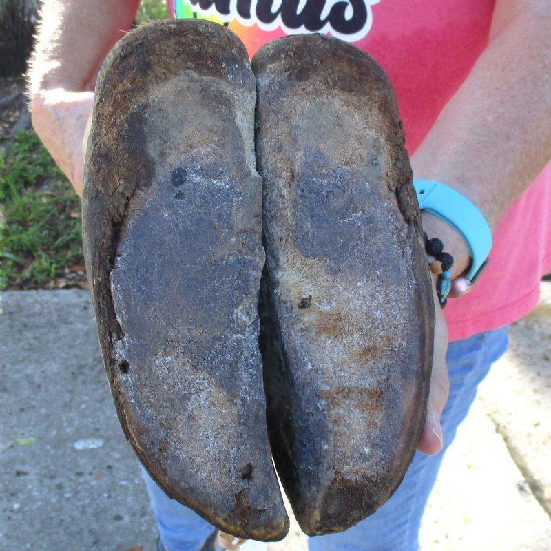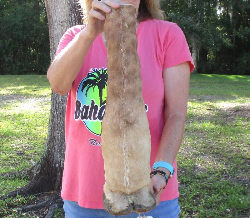 Authentic 21 inch Giraffe foot mount. This giraffe foot mount is used in making animal print stools, tables and stands and was professionally tanned and mounted by a South African taxidermist. Rough spot on hoof. Review photos. There is visible stitching on the backs of these foot mounts. The giraffe feet are from wild African giraffe and will have natural imperfections that are found on all wild animal feet.