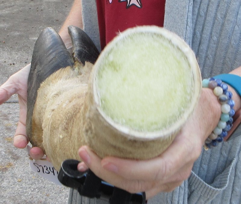 Authentic 21 inch Giraffe foot mount. This giraffe foot mount is used in making animal print stools, tables and stands and was professionally tanned and mounted by a South African taxidermist.  Does not stand alone and missing hair on backReview photos. There is visible stitching on the backs of these foot mounts. The giraffe feet are from wild African giraffe and will have natural imperfections that are found on all wild animal feet.  The giraffe was obtained from the African Government's culling programs and was cleared for legal entry into the U.S. by the U.S. Fish and Wildlife Service and U.S. Customs.