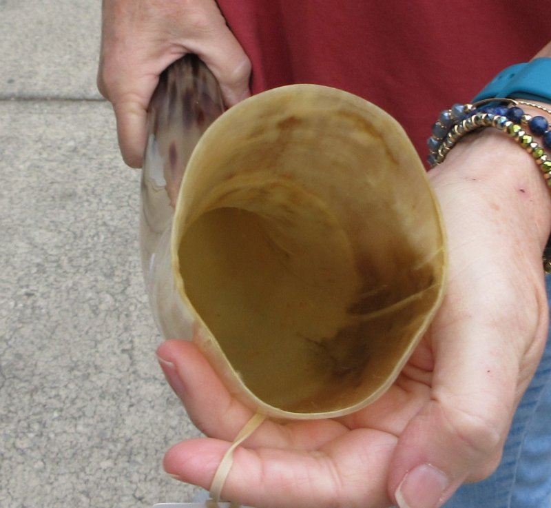 Polished Tan Cow/Cattle horn for sale, measuring approximately 22 inches, measured around the curve of the horn using a cloth tape measure not straight up and down with a ruler.  These horns do not stand unsupported.  Cow/Cattle horns vary in coloring, size and shape and are used for making animal horn jewelry, in cabin decor, rustic decor, as knife handle material and for cane handles, for carving, in the art of scrimshaw and in making inlaid instruments.