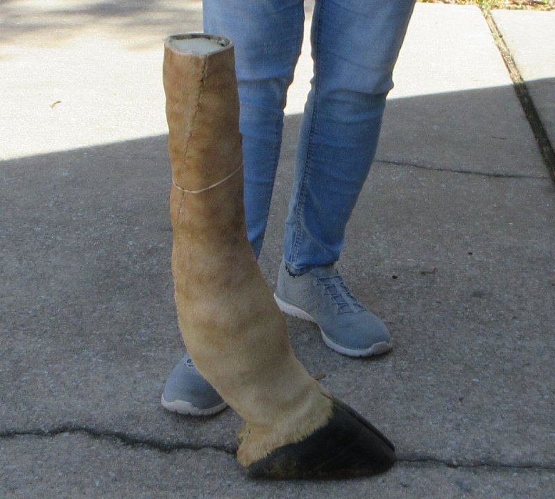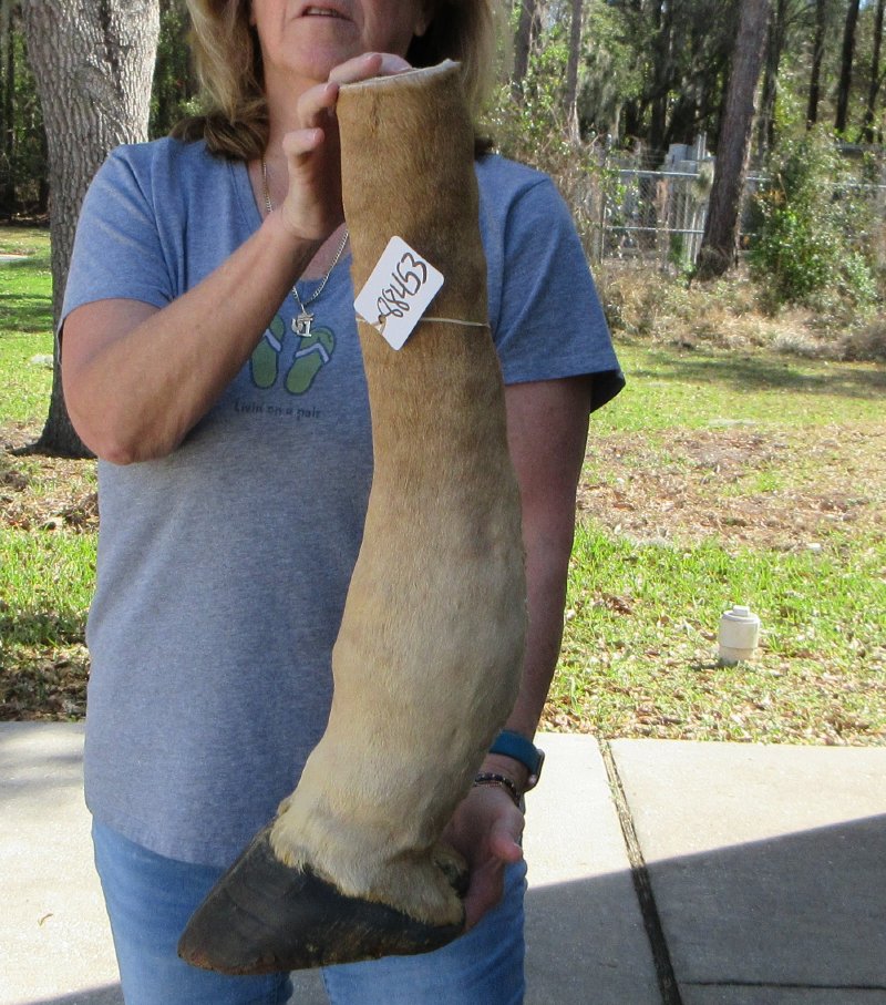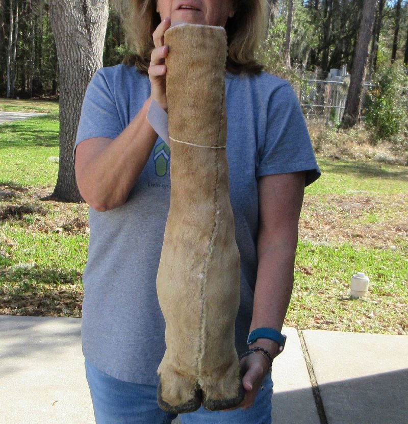 Authentic 23-1/2 inch Giraffe foot mount. This giraffe foot mount is used in making animal print stools, tables and stands and was professionally tanned and mounted by a South African taxidermist. Review photos. There is visible stitching on the backs of these foot mounts. The giraffe feet are from wild African giraffe and will have natural imperfections that are found on all wild animal feet.  The giraffe was obtained from the African Government's culling programs and was cleared for legal entry into the U.S. by the U.S. Fish and Wildlife Service and U.S. Customs.