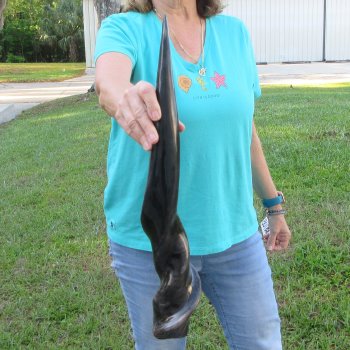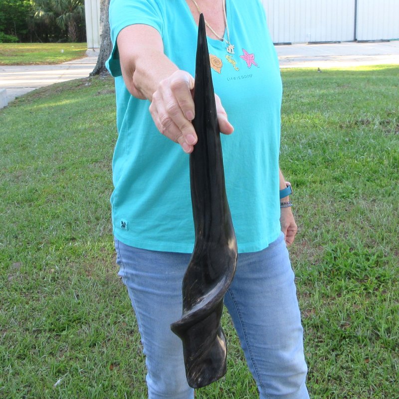Polished Male Eland horn (Taurotragus oryx), measured around the curl, imported from South Africa. This eland horn measures approximately 23-1/2 inches long (measured around the curl of the horn with a cloth tape measure, not up and down with a ruler).  - Review all photos.  Eland horns are used in making shofars, blowing horns, eland horn instruments, furniture legs, lamps, sconces, knife handles, cane handles, inlaid crafts and numerous other taxidermy crafts.