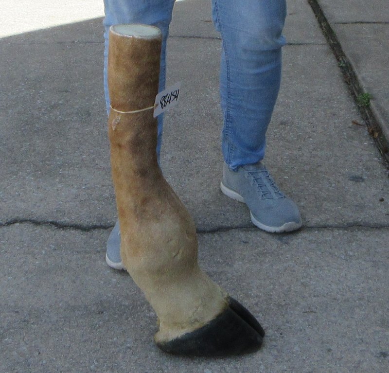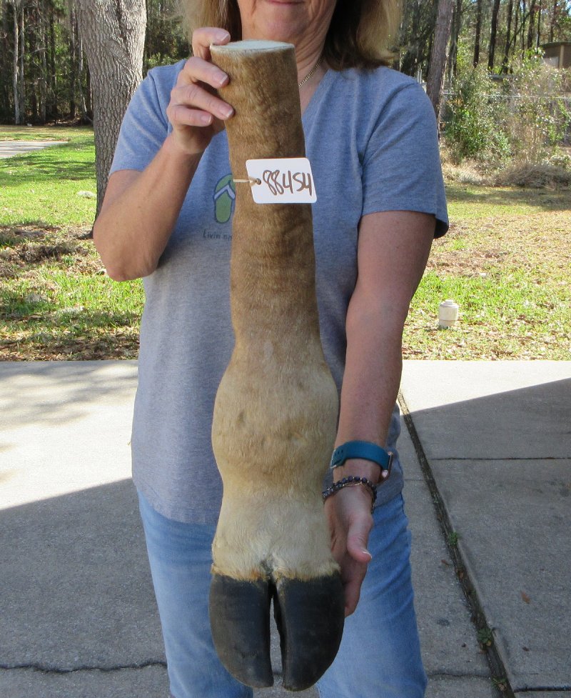 Authentic 23 inch Giraffe foot mount. This giraffe foot mount is used in making animal print stools, tables and stands and was professionally tanned and mounted by a South African taxidermist. Review photos. There is visible stitching on the backs of these foot mounts. The giraffe feet are from wild African giraffe and will have natural imperfections that are found on all wild animal feet.  The giraffe was obtained from the African Government's culling programs and was cleared for legal entry into the U.S. by the U.S. Fish and Wildlife Service and U.S. Customs.