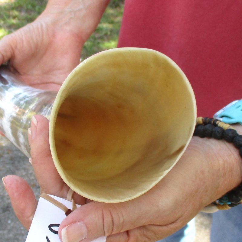Polished White Cow/Cattle horn for sale, measuring approximately 23 inches, measured around the curve of the horn using a cloth tape measure not straight up and down with a ruler.  These horns do not stand unsupported.  Cow/Cattle horns vary in coloring, size and shape and are used for making animal horn jewelry, in cabin decor, rustic decor, as knife handle material and for cane handles, for carving, in the art of scrimshaw and in making inlaid instruments.