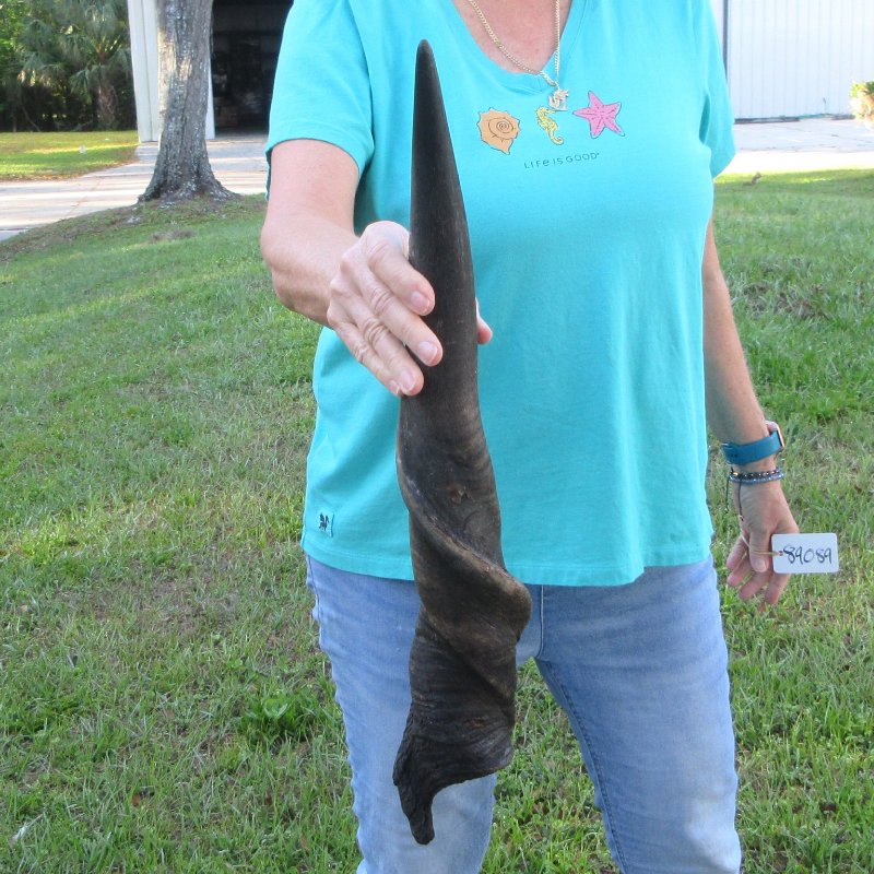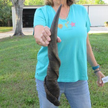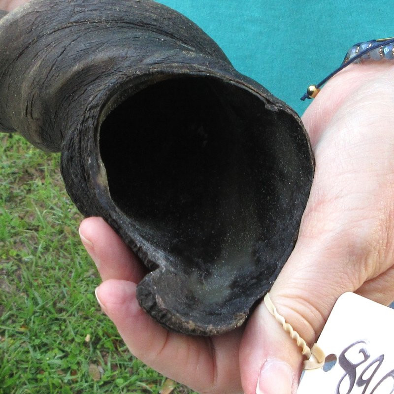 Male Eland horn (Taurotragus oryx), measured around the curl, imported from South Africa. This eland bull horn measures approximately 23 inches (measured around the curl of the horn with a cloth tape measure, not straight up and down with a ruler).    Review all photos.  Eland horns are used in making shofars, blowing horns, eland horn instruments, furniture legs, lamps, sconces, knife handles, cane handles, inlaid crafts and numerous other taxidermy crafts.