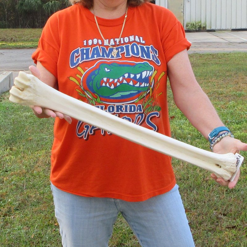 African Giraffe Metatarsal (Giraffa camelopardalis) for sale Leg Bone measuring approximately 24 inches long. This bone is from a real giraffe and will have imperfections such as cracks, tiny holes, fine lines, and chipped edges. - Review all photos. Giraffe leg bones are used for carving, scrimshaw art, making bone knife handles, and for numerous other craft projects.