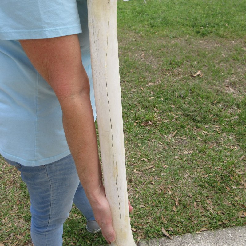 African Giraffe Metacarpal (Giraffa camelopardalis) Leg Bone for sale, measuring approximately 27 inches long. This bone is from a real giraffe and will have imperfections such as cracks, tiny holes, fine lines, discoloration, and chipped edges. - Crack down bone and discoloration. Review all photos. Giraffe leg bones are used for carving, scrimshaw art, making bone knife handles, and for numerous other craft projects.