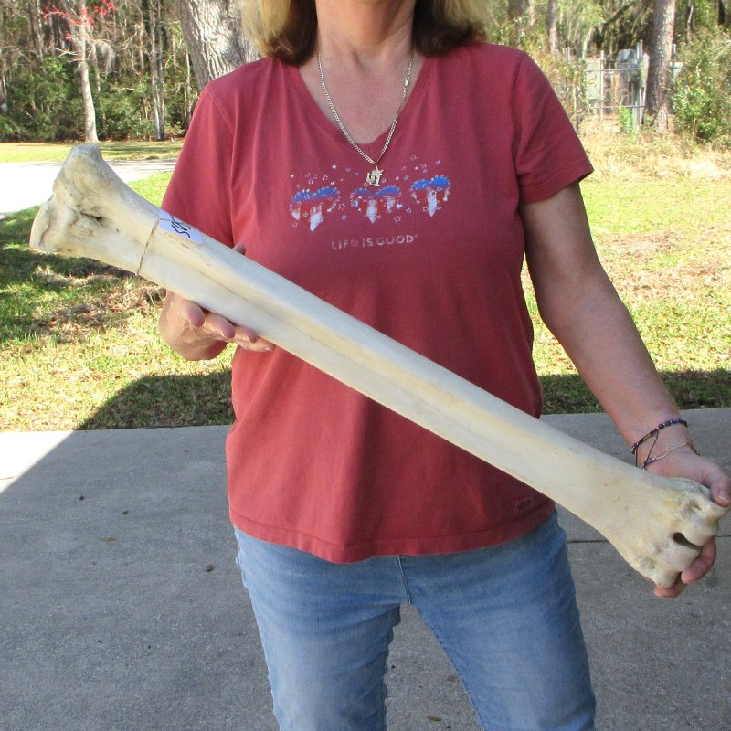 African Giraffe Metacarpal (Giraffa camelopardalis) Leg Bone for sale, measuring approximately 29 inches long. This bone is from a real giraffe and will have imperfections such as cracks, tiny holes, fine lines, discoloration, and chipped edges.Review all photos. Giraffe leg bones are used for carving, scrimshaw art, making bone knife handles, and for numerous other craft projects.