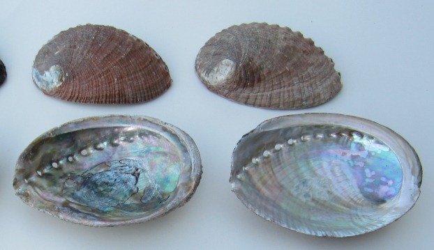 Wholesale green abalone seashells, commercial grade with natural imperfections, measuring approximately 3 to 4 inches long are colorful shells to add to a shell collection. The highly iridescent inner layer of the abalone shell has traditionally been used as a decorative item in jewelry, buttons, and as inlay in furniture, knife handles, and in musical instruments such as guitars, etc. The shell is also polished and sold for seashell decorating and used in shell crafts and making inlaid knife handles, tables and jewelry. Abalone is a marine snail commonly called ear shell, sea ear, and ormer. Abalones live in warm areas of the Pacific Ocean, in the Indian Ocean, and on Europe's coasts.