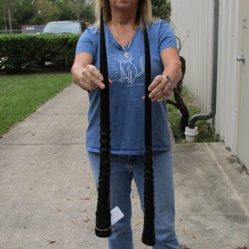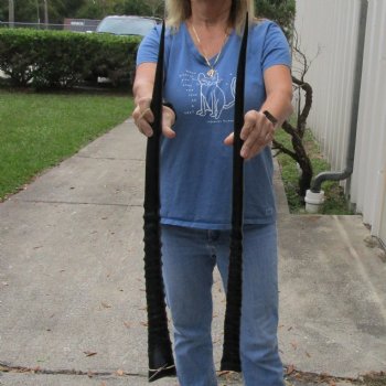 2 piece lot of Polished Gemsbok Horns, measuring approximately 31 inches and 32 inches long and measured around the curve of the horns. These are real animal horns NOT replicas and not museum quality. Expect them to have