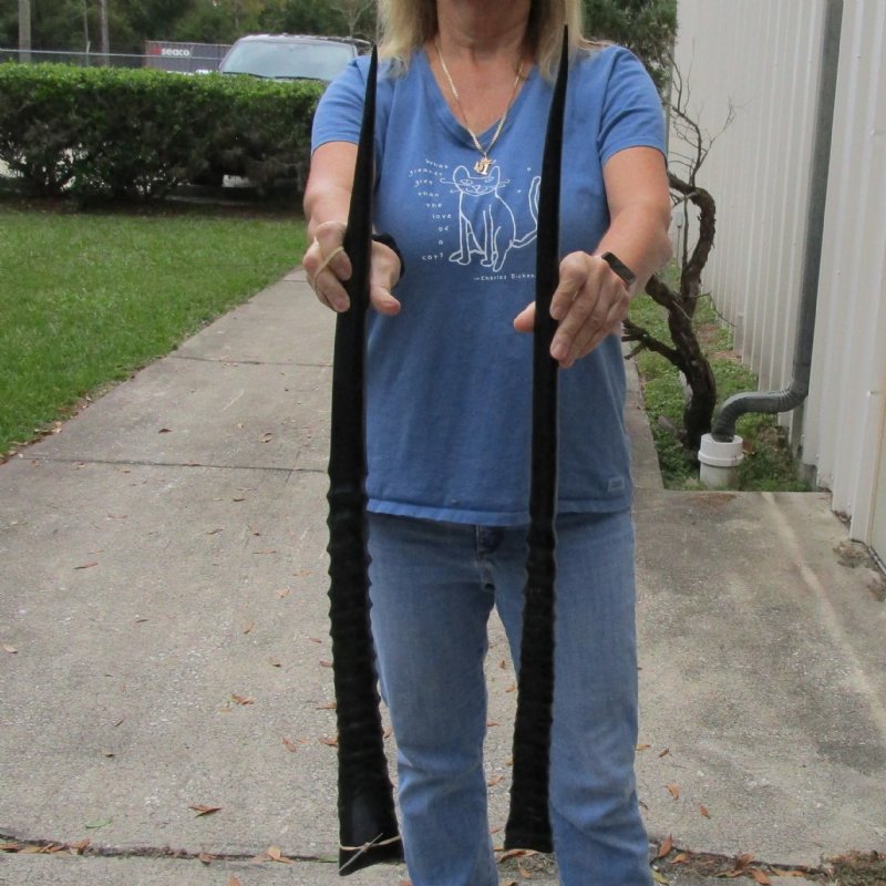 natural imperfections from living in the wild and fighting - cuts scars, blemishes, fraying, etc. Review all photos. Gemsbok horns are used for making gemsbok bows, shofars, furniture and blowing horns. Gemsbok horns are also used in crafting furniture, knife and cane handles and in numerous other taxidermy crafts.