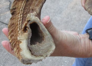 OUR RAM/SHEEP HORNS ARE 100% REAL - NOT REPLICAS! ALL OF THEM WILL HAVE NATURAL IIMPERFECTIONS FROM LIVING IN THE WILD INCLUDING SPLITS, GOUGES TINY HOLES, SCRAPES, ETC., WHICH WILL NEED TO BE PATCHED - REPAIRED.