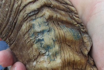 This XL sheep (Ovis Aries) horn measures approximately 33 inches in size. This sheep horn will have natural imperfections including, gouges, holes, splits, missing sections of top layer, etc. from aging and fighting. Green paint - Review photos. Sheep horns are measured around the curl of the horn - not straight. Sheep horns are used in making blowing horns, furniture legs, lamps, sconces, knife handles, cane handles, inlaid crafts and numerous other taxidermy crafts. Our ram horns are a by-product of the farming industry and Government culling programs. Our ram horns are imported from India and South Africa.