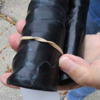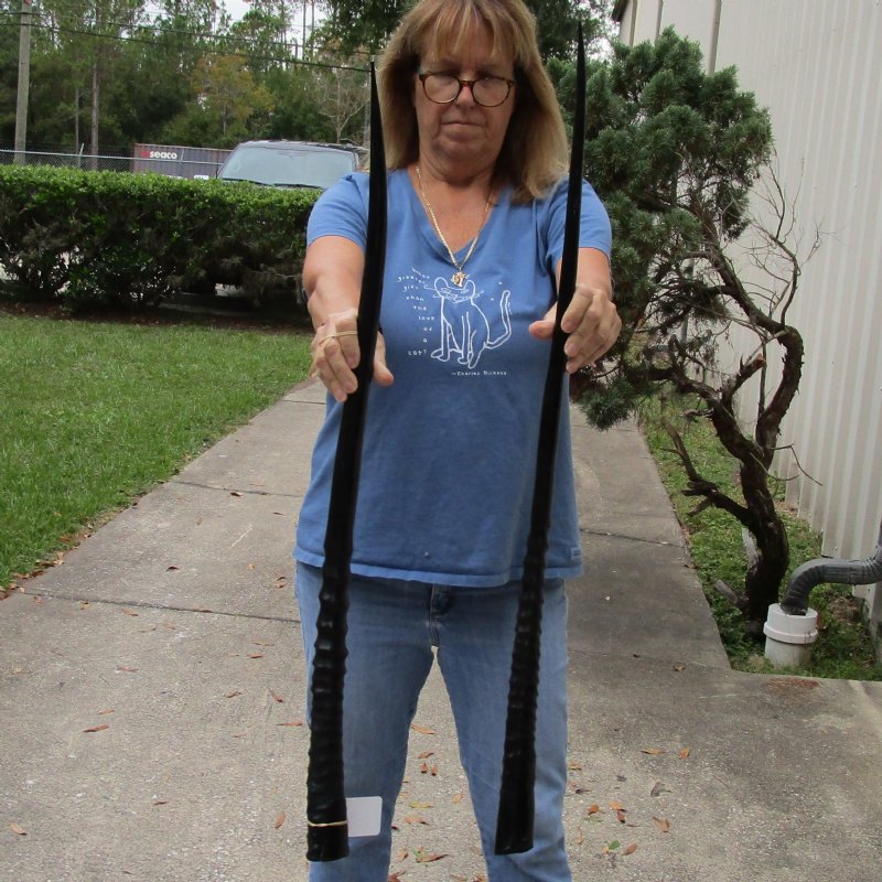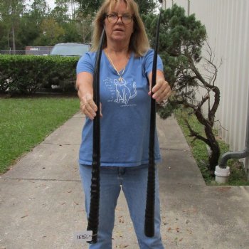 2 piece lot of Polished Gemsbok Horns, measuring approximately 35 inches and 36 inches long and measured around the curve of the horns. These are real animal horns NOT replicas and not museum quality. Expect them to have