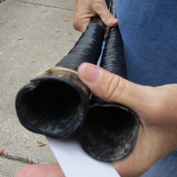 natural imperfections from living in the wild and fighting - cuts scars, blemishes, fraying, etc. Review all photos. Gemsbok horns are used for making gemsbok bows, shofars, furniture and blowing horns. Gemsbok horns are also used in crafting furniture, knife and cane handles and in numerous other taxidermy crafts.
