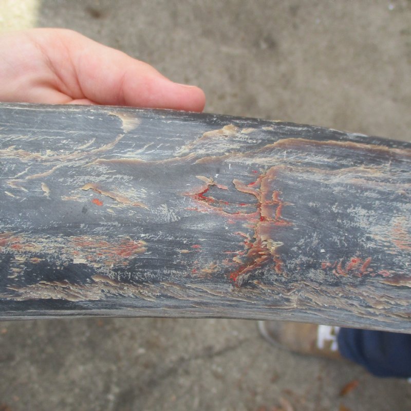 Raw, Indian Water Buffalo Horns (Bubalus bubalis) for sale, measuring approximately 35 inches each in length. These horns are measured around the curve of the horn with a cloth tape measure, not straight up and down with ruler. - Review all photos. Buffalo horns will vary in coloring, size, shape, and texture. The horns are natural and will have imperfections. These may have a tag on them this is a requirement of the U.S Customs Department.  All products imported into the U.S must have a Country of Origin tag.