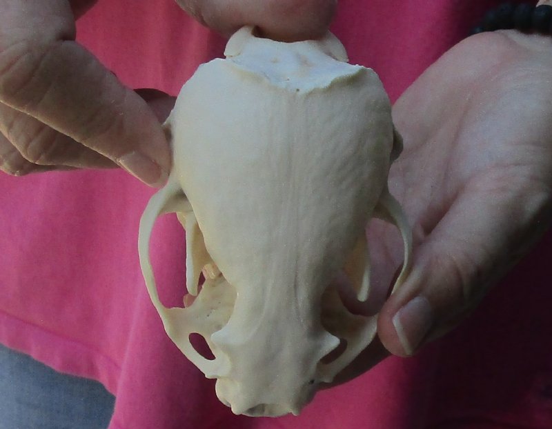 North American Otter Skull measuring 4-1/4 inches long.    review photos. Our otter skulls have been cleaned and are ready for display; however, some may be off-white in color and have small patches of discoloration.  These skulls are from wild otter and are commercial grade and imperfect. They may have imperfections due to the natural aging process and living in the wild--scars, blemishes, rub areas, broken teeth, missing teeth, bug bite marks, etc.