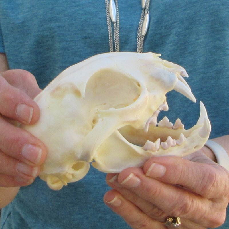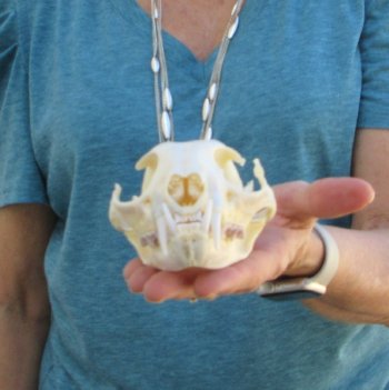 Bobcat skull For Sale, (Lynx rufus) a small animal skull measuring approximately 4-3/4 inches long and 3-1/2 inches wide. This bobcat skull will have natural imperfections found on all wild animal skulls. - Review Photos. Our bobcat skulls have been cleaned and whitened; however, these skulls may have patches of discoloration.