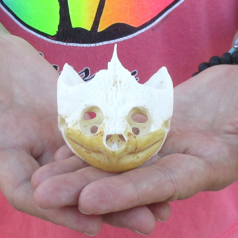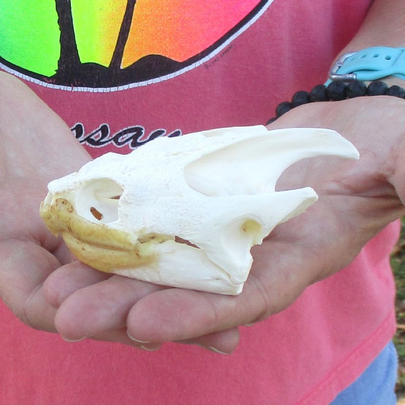 Common North American Snapping Turtle Skull (Chelydra serpentina) measuring approximately 4 inches long, and 2-1/2 inches wide. Review all photos. Turtle skulls can be used in Native American crafts. The snapping turtle is a cold-blooded fresh water animal and will usually be found during the day sitting in the sun on a rock, log, or any stumps that are near the water.  Common snappers are noted for their belligerent disposition when out of the water, they have powerful beak-like jaws and a highly mobile head and neck. In some areas they are heavily hunted for their meat, a popular ingredient in turtle soup.