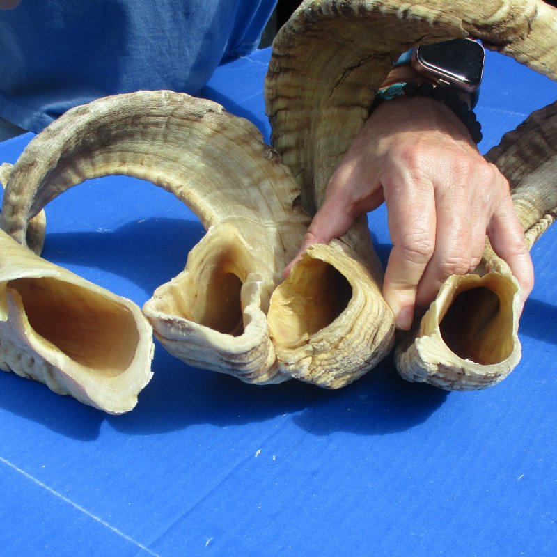 OUR RAM/SHEEP HORNS ARE 100% REAL - NOT REPLICAS! ALL OF THEM WILL HAVE NATURAL IIMPERFECTIONS FROM LIVING IN THE WILD INCLUDING SPLITS, GOUGES TINY HOLES, SCRAPES, ETC., WHICH WILL NEED TO BE PATCHED - REPAIRED.