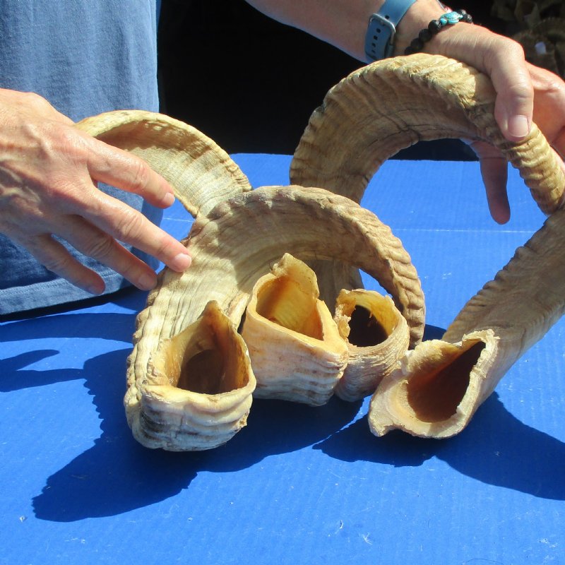 OUR RAM/SHEEP HORNS ARE 100% REAL - NOT REPLICAS! ALL OF THEM WILL HAVE NATURAL IIMPERFECTIONS FROM LIVING IN THE WILD INCLUDING SPLITS, GOUGES TINY HOLES, SCRAPES, ETC., WHICH WILL NEED TO BE PATCHED - REPAIRED.