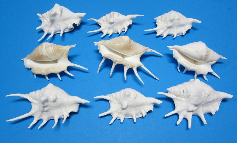 4" to 6" Wholesale White Lambis Lambis Spider Conchs, White Shells - 20 pcs @ $.80 each; 100 pcs @ $.72 each