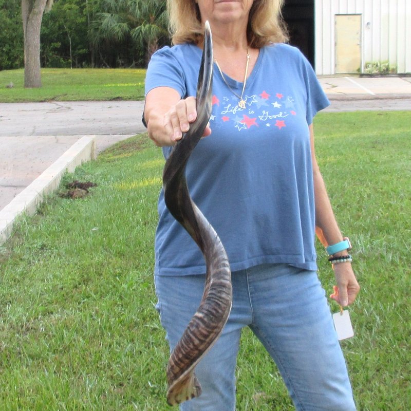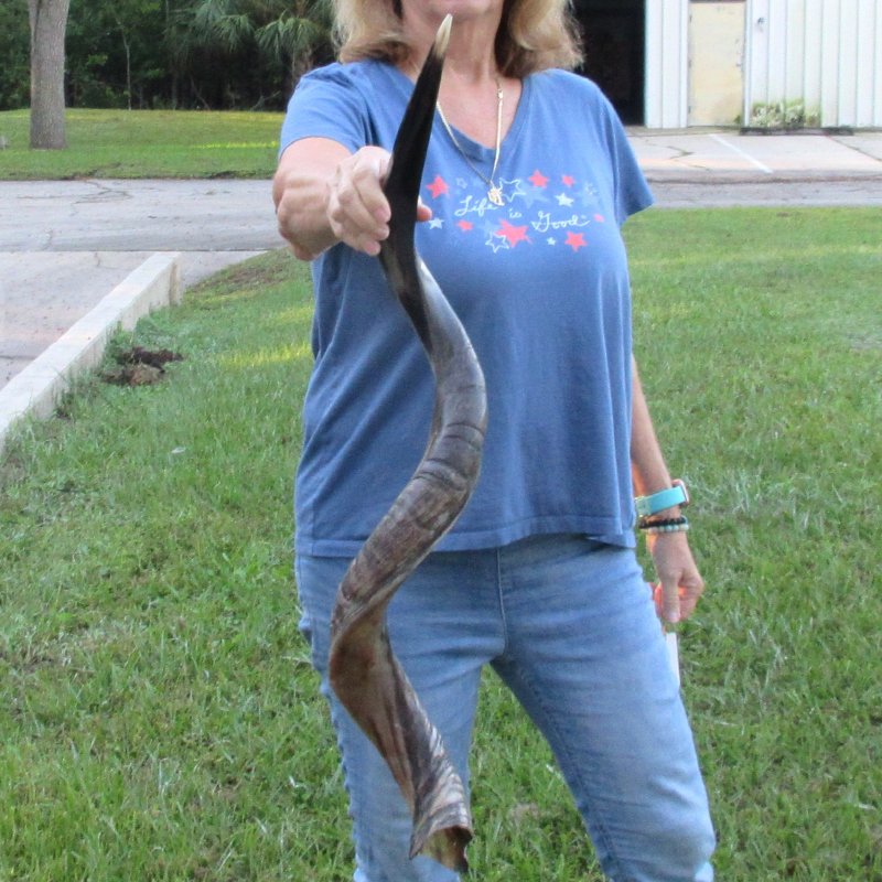 Polished Kudu Horn for sale (Tragelaphus strepsiceros) for sale imported from South Africa, measuring approximately 40 inches. - Review all photos. You will receive the horn shown in the photo. All horns are measured around the curve of the horn using a cloth tape measureAll of our horns are commercial grade and imperfect. They will have imperfections due to the natural aging process and living in the wild--scars, blemishes, rub areas, worm holes, etc. This horn was cleared by the U.S Fish and Wildlife Services and U.S Customs Services for legal entry into the United States. It was obtained from the African Government's Culling Program.