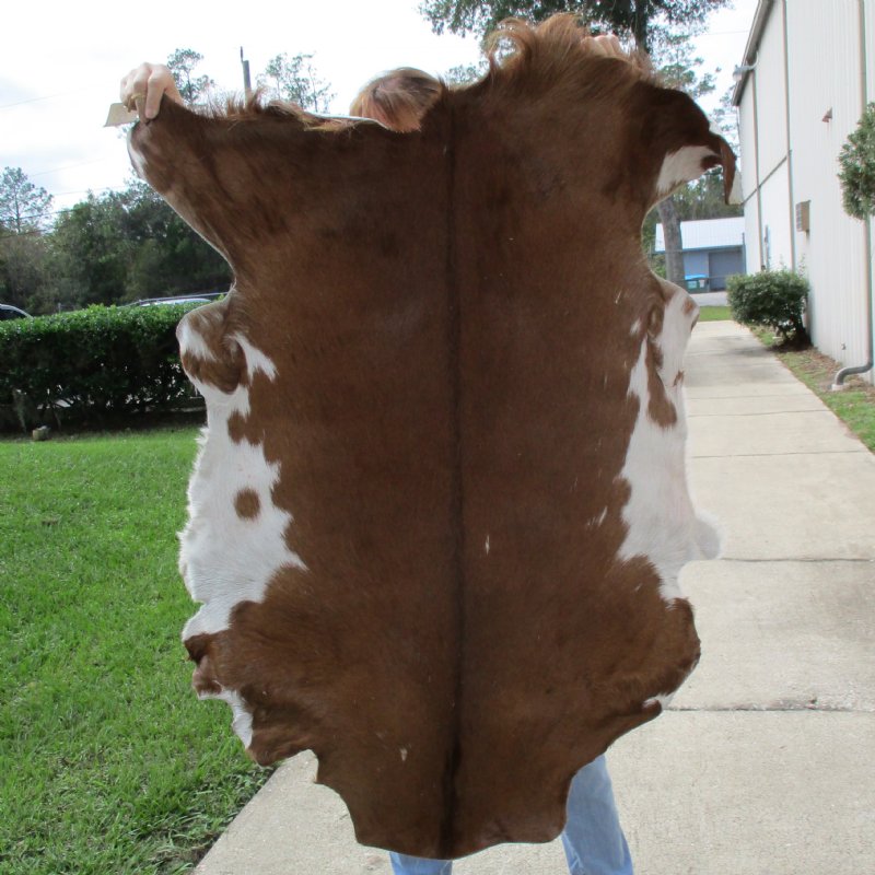 Goat Hide/Skin (Capra aegagrus hircus) for sale, measuring approximately 46-1/2 inches long and 40 inches wide. Review all photos. Goat hides, goat skins are used for making Native American Drums , goat skin pillows, purses and in other taxidermy crafts. This is a real skin/hide - not imitation. It will have natural imperfections such as sections of sparse fur or small holes in the hides, uneven neckline, uneven body shape or uneven leg cuts. It was imported from India, where goats are used for milk and meat.