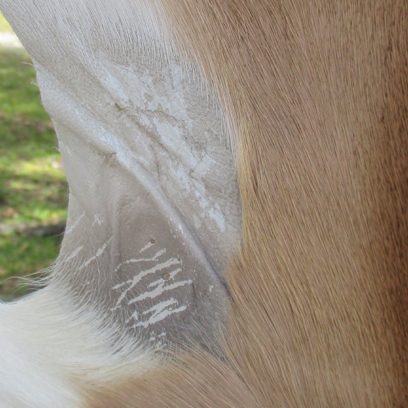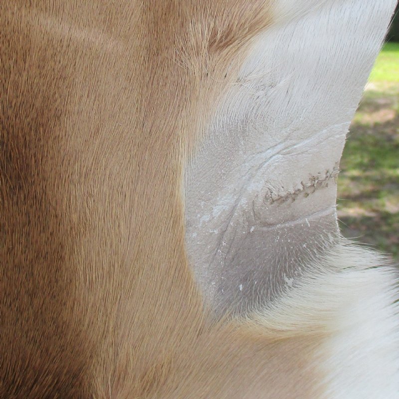 All our animal skins are Grade B and will have natural imperfections which may include areas of thinning/sparse hair due to shedding, bare spots, scratches, tiny holes, repair stitching and patches on the back of the hide.