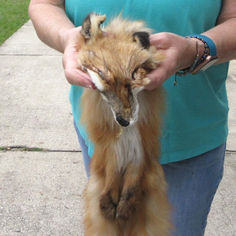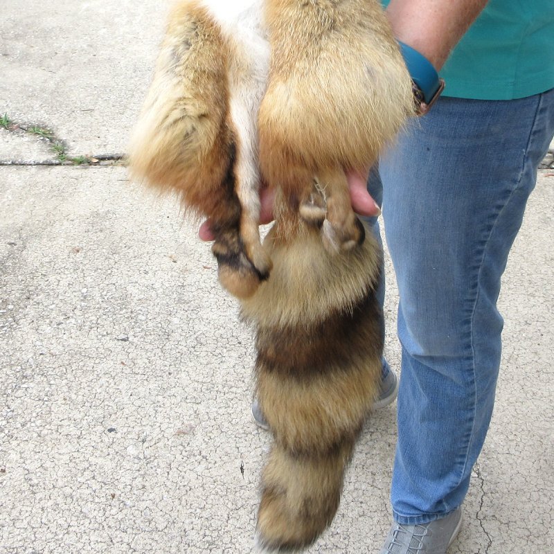 Red Fox fur pelt, tanned hide for sale (Vulpes vulpes). This Red Fox hide measures approximately 49 inches long.   Part of tail broken. Review photos. The Red Fox is the largest of the foxes and is present across the entire Northern Hemisphere.  It has an elongated body with relatively short limbs.  It feeds mostly on small rodents, but will target rabbits, game birds, reptiles and other small animals.