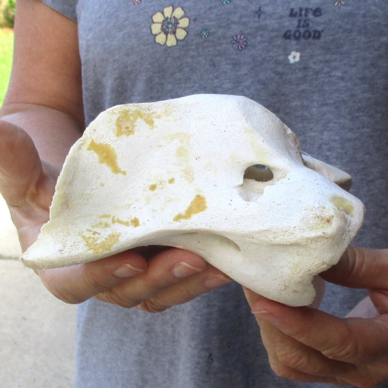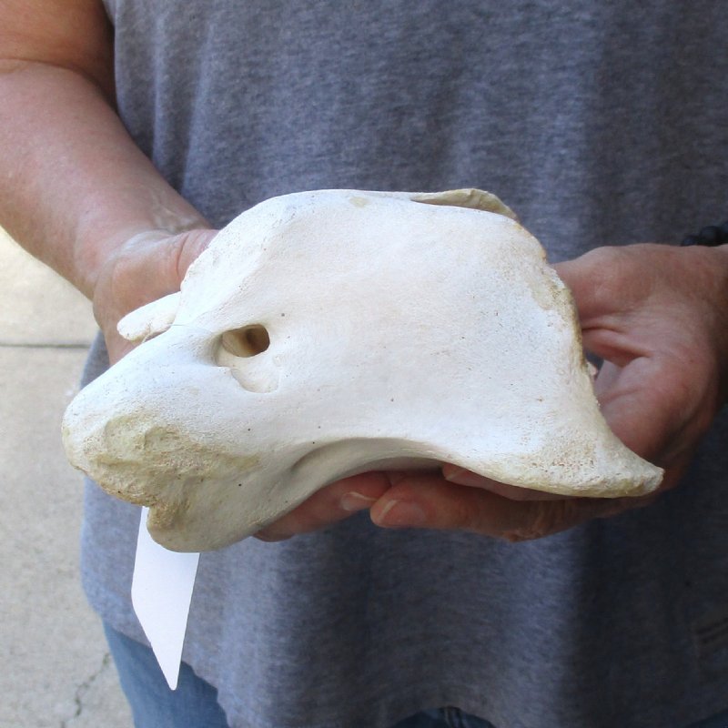 Giraffe Vertebra Atlas Bone (Giraffa camelopardalis) for sale measuring approximately 5-3/4 inches long and 4-3/4 inches high. Review all photos. This giraffe vertebra bone is from a real African Giraffe's neck and will have some stains and natural imperfections normally found on all wild animal bones.