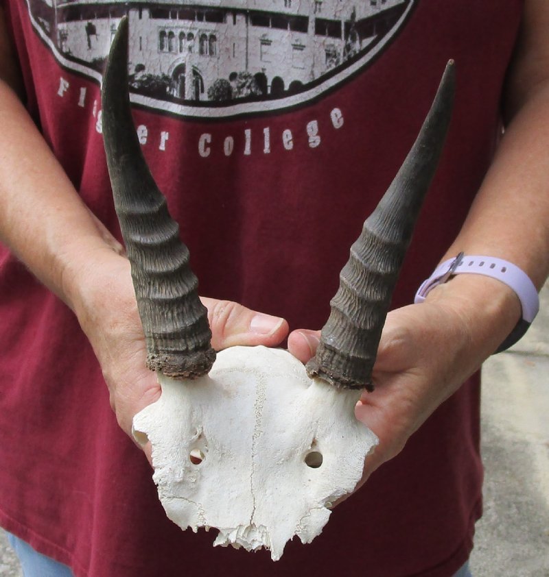 This Mountain Reedbuck skull plate is from a wild African Reedbuck and will have imperfections caused by the animal living in the wild and the natural aging process.