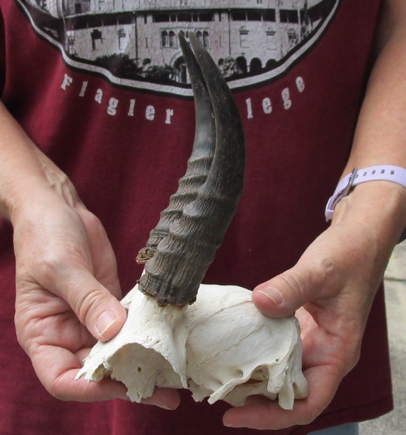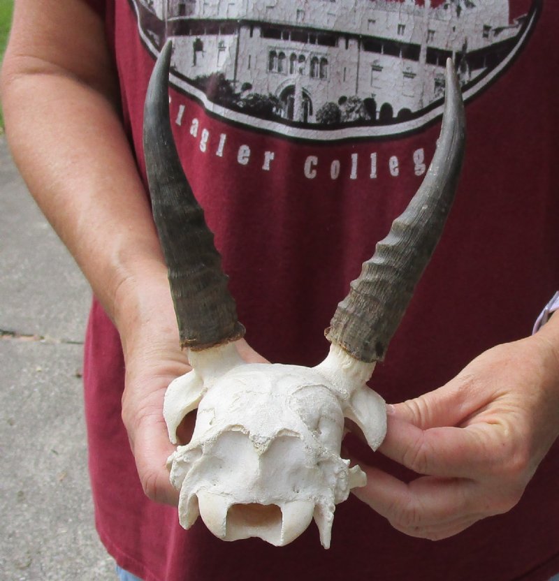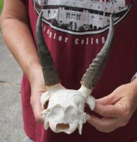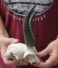 Mountain Reedbuck skull plate with 5-3/4 inch horns, measured around the curl of the horns.  These skull plates with horns are perfect for cabin decor, rustic decor and for decorating your hunting lodge.