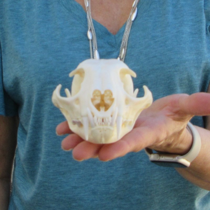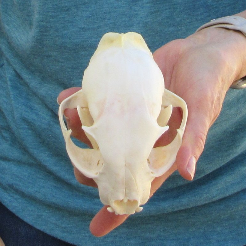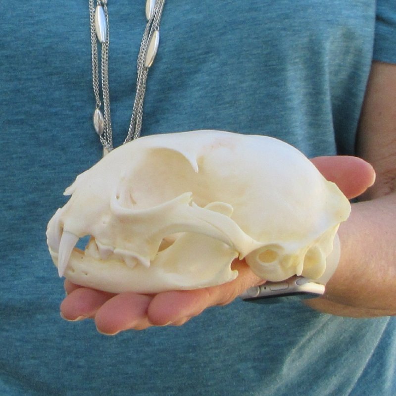 Bobcat skull For Sale, (Lynx rufus) a small animal skull measuring approximately 5 inches long and 3-1/2 inches wide. This bobcat skull will have natural imperfections found on all wild animal skulls. - Review Photos. Our bobcat skulls have been cleaned and whitened; however, these skulls may have patches of discoloration.