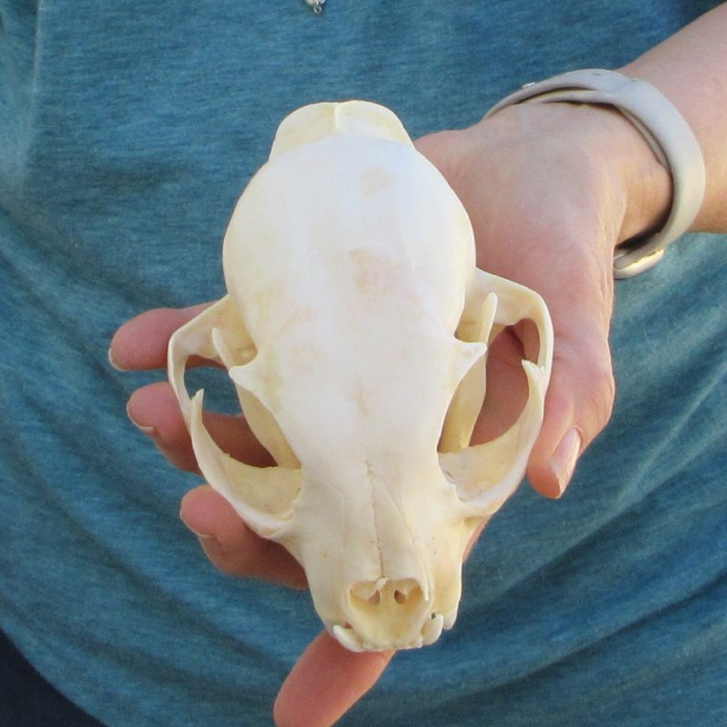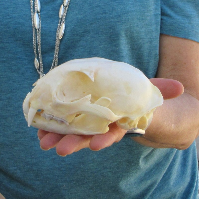 Bobcat skull For Sale, (Lynx rufus) a small animal skull measuring approximately 5 inches long and 3-1/2 inches wide. This bobcat skull will have natural imperfections found on all wild animal skulls. - Review Photos. Our bobcat skulls have been cleaned and whitened; however, these skulls may have patches of discoloration.
