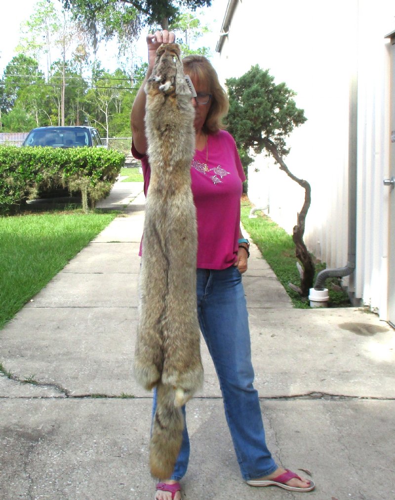 Soft tanned coyote pelt for sale, coyote skins, hides. - Review photos. It measures approximately 53 inches long from the tip of the nose to the end of the tail.  These coyote pelts, skins, hides are from wild coyotes and will have imperfections that are normally found on all wild animals. The coyote also known as the American jackal, brush wolf, or the prairie wolf, is a species of canine found throughout North and Central America, ranging from Panama in the south, north through Mexico, the United States, and Canada. It occurs as far north as Alaska and all but the northernmost portions of Canada.