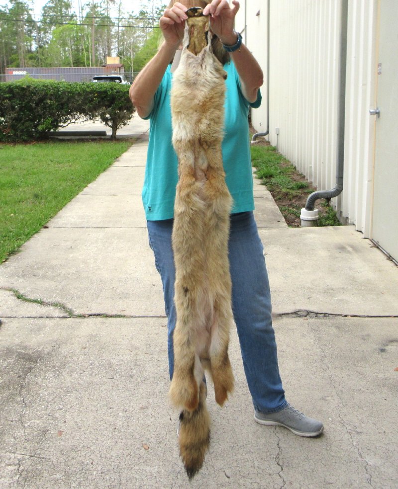 Soft tanned coyote pelt for sale, coyote skins, hides. - Review photos. It measures approximately 59 inches long from the tip of the nose to the end of the tail.  These coyote pelts, skins, hides are from wild coyotes and will have imperfections that are normally found on all wild animals. The coyote also known as the American jackal, brush wolf, or the prairie wolf, is a species of canine found throughout North and Central America, ranging from Panama in the south, north through Mexico, the United States, and Canada. It occurs as far north as Alaska and all but the northernmost portions of Canada.