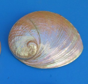 Wholesale Pearlized Greenlip Abalone Shell (Haliotis laevigata) measuring approximately 6 to 6-7/8 inches.  Naturally the greenlip abalone outer shell has an earthy, smooth, and pale-colored surface.  When polished or "pearlized," the outer layer is removed to reveal a brilliant white surface with flashes of blue, green, and pink.  The lip name comes from the bright green frill of the living animal's muscular foot, which is visible at the edge of the shell.  Polished Greenlip Abalone can be used in making jewelry, inlays in furniture, decorative and ritual use.