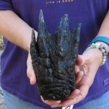 Preserved Alligator Foot, measuring approximately 7-1/2 inches in length. The ends of the foot have been rough cut and painted black Review all photos. This alligator foot will have an odor from the preservation process that will subside over time. This is a Real Gator Foot - Not a Replica. It will have natural imperfections. These alligator feet come from gator farms where the gators are harvested for their meat and hide.