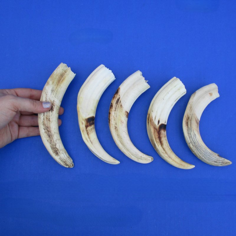 7" Ivory Tusks from African Warthogs, 5 pc - $60