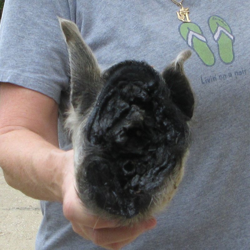 Real Preserved Georgia Wild Boar, Hog/Pig Head. This preserved wild boar measures approximately 7 inches long.  It will have a slight odor from the preservation process that will subside over time. It is Real - Not a Replica.  The back of the head has been rough cut and painted black.