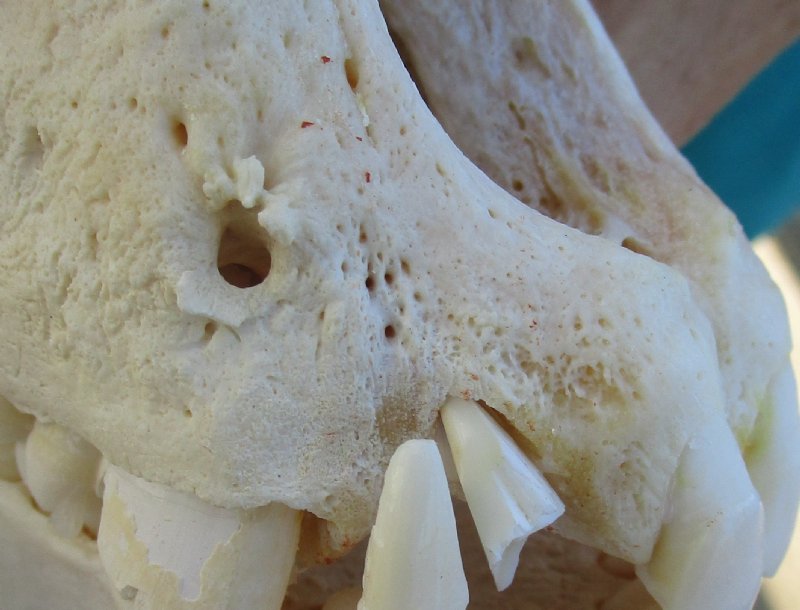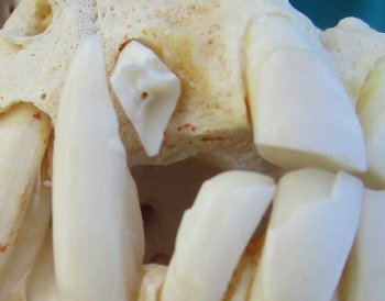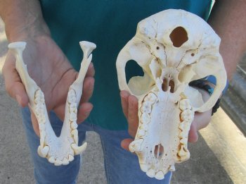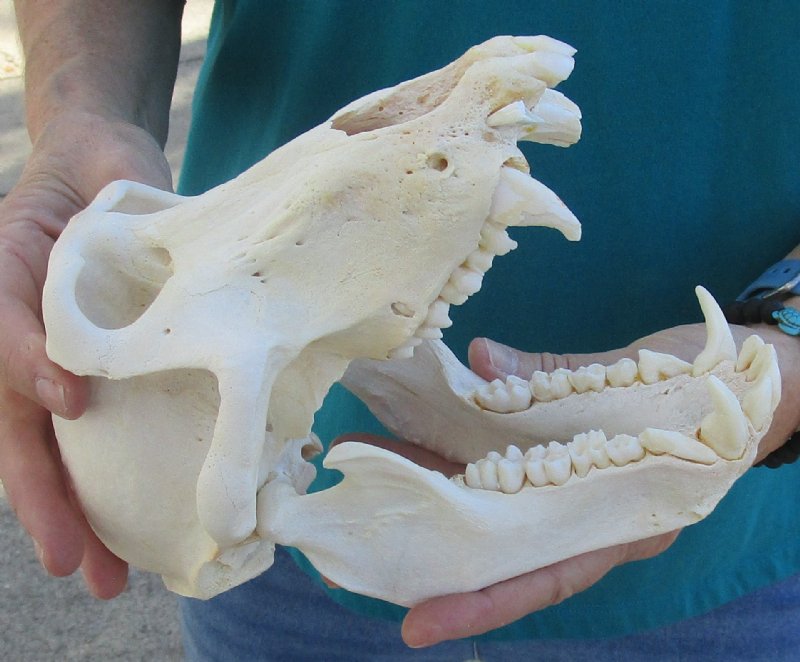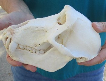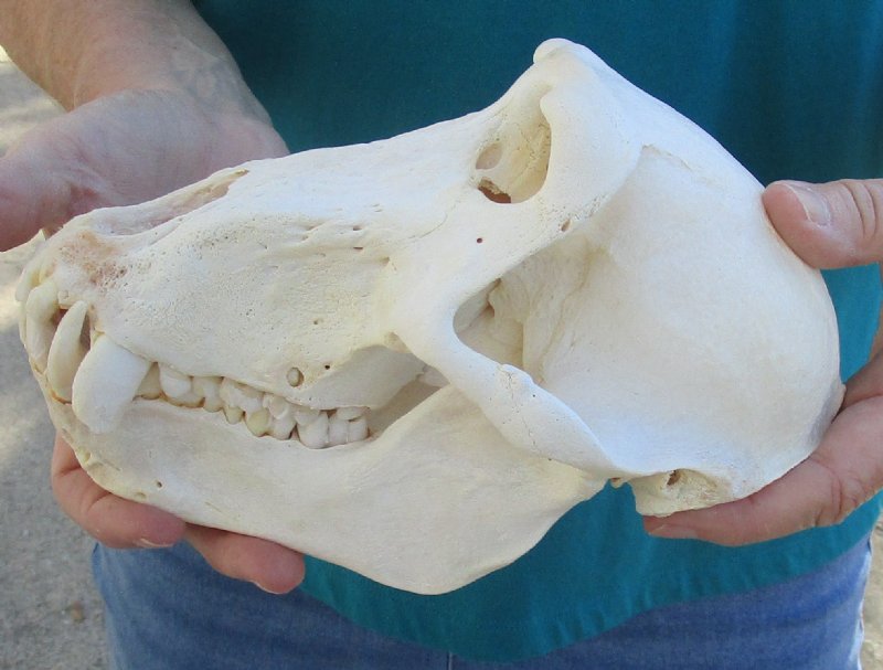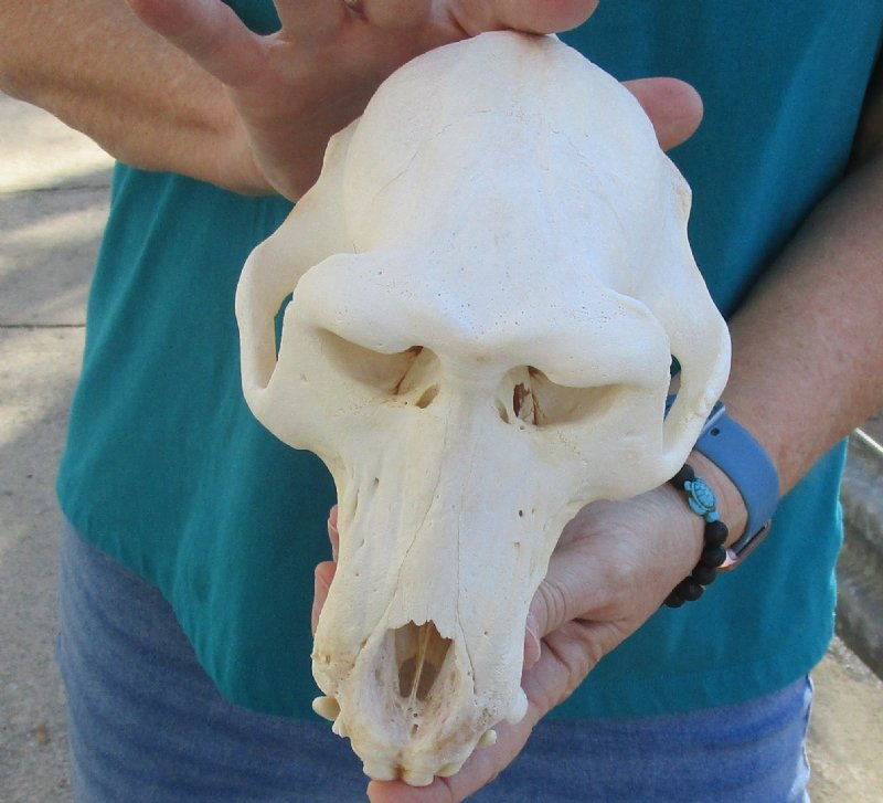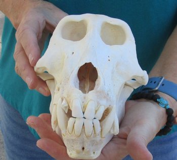 All of our baboon skulls are commercial grade and imperfect.  They will have imperfections due to the natural aging process and living in the wild--scars, blemishes, broken/missing teeth, etc.  This baboon skull was professionally cleaned and cleared by the U.S Fish and Wildlife Services and U.S Customs Services for legal entry into the United States.