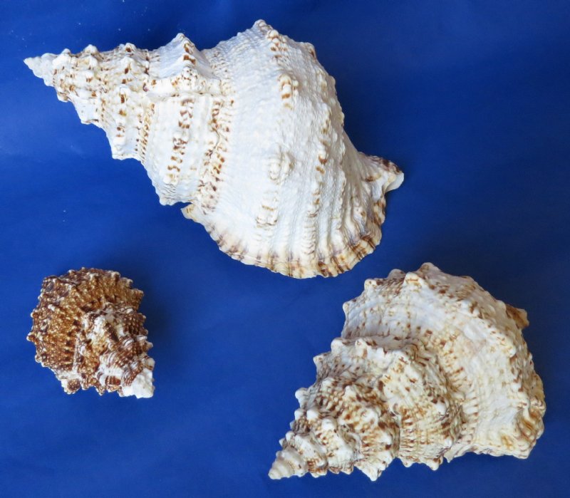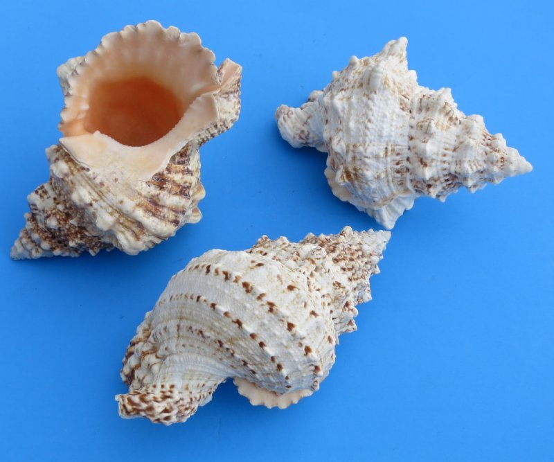 Wholesale giant frog shells, Bursa bubo, measuring between approximately 8 inches and 8-7/8 inches. These giant frog shells are usually thick and heavy and are perfect for seashell centerpieces and tropical decor.