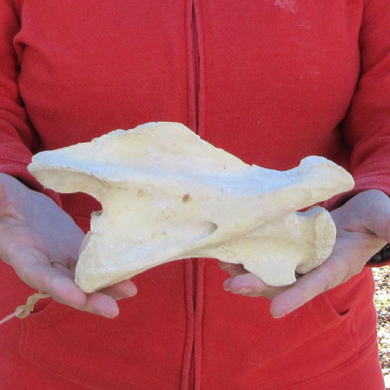 Small Giraffe Neck Vertebra Bone (Giraffa camelopardalis) for sale measuring approximately 8 inches long and 4 inches wide.  Review all photos. This giraffe vertebra bone is from a real African Giraffe's neck and will have some stains and natural imperfections normally found on all wild animal bones.