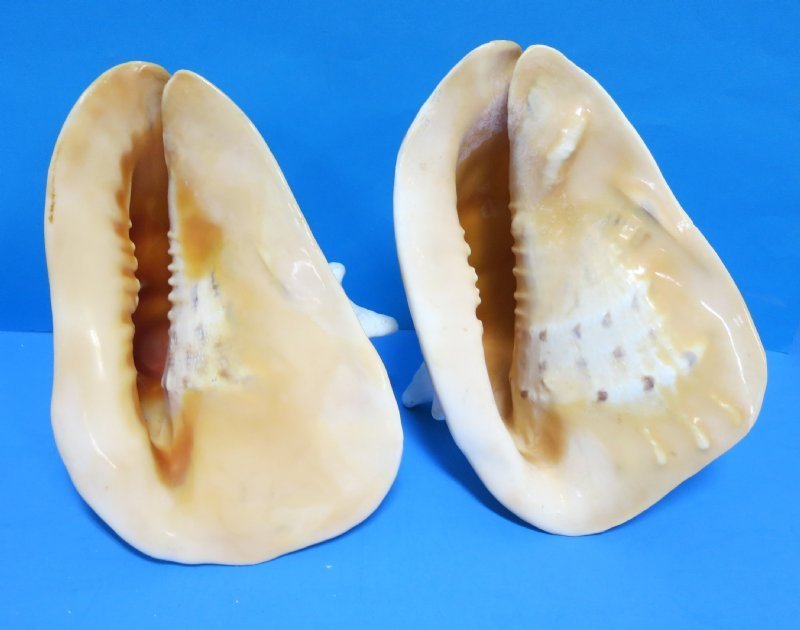 9 inches Yellow Helmet Shells, Horned Helmet Shells, Cassis cornuta are large seashells used in coastal home decorating.. Yellow helmet shells, also called horned helmet shells are found in the Indo-Pacific. Helmet shells, horned helmet shells, live mostly in warm waters around the world. These yellow helmet shells, also called horned helmet shells or cassis cornuta are beautiful peach colored shells.