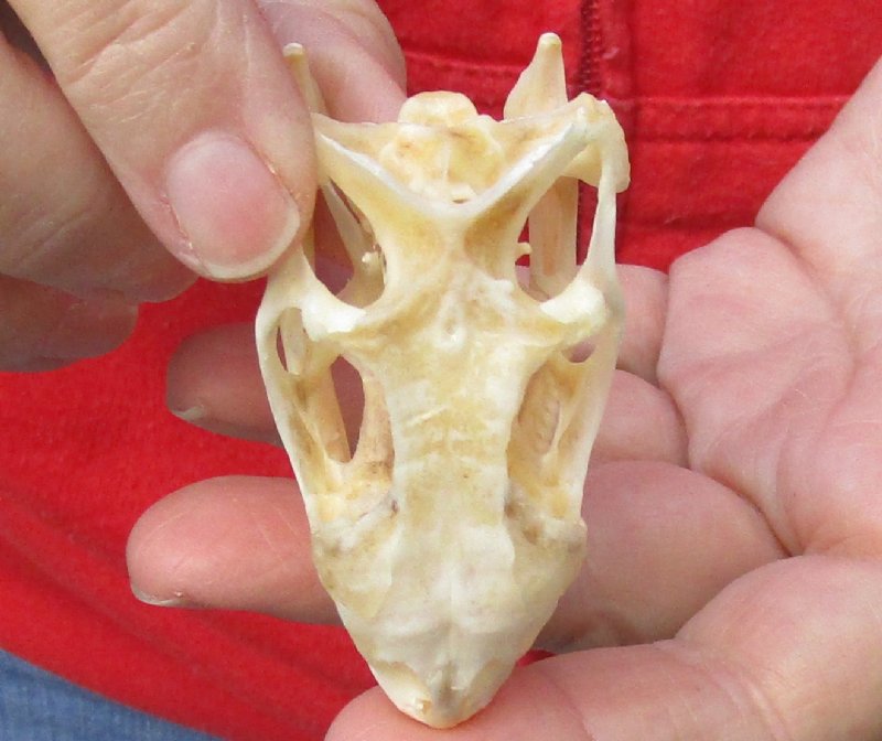 A-Grade Green Iguana skull (Iguana iguana) for sale, also known as the American iguana or the common green iguana.  The skull measures approximately 2-1/2 inches long and 1-1/4 inches wide. beetle cleaned and whitened - Review photos.  This iguana skull will have natural imperfections found on all wild animal skulls. Our iguana skulls have been cleaned and whitened; however, these skulls may have patches of discoloration.
