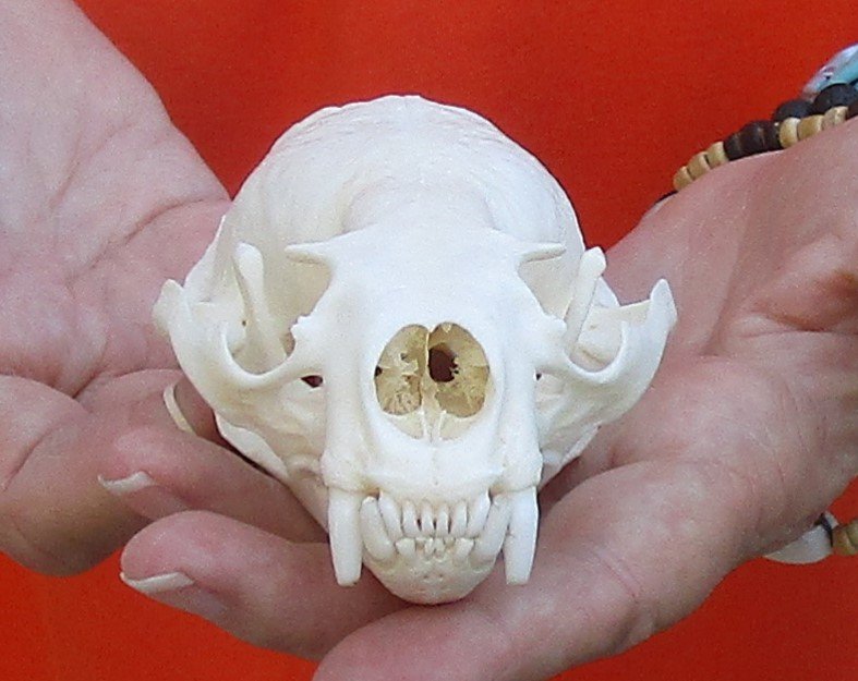 A-Grade North American River Otter (Lontra canadensis) skull, also known as the northern river otter or common otter. This skull measuring approximately 4-1/4 inches long by 2-3/4 inches wide.  review photosThis otter skulls has been beetle cleaned and whitened however, some may be off-white in color and have small patches of discoloration. These skulls are from wild otter and are commercial grade and imperfect. They may have imperfections due to the natural aging process and living in the wild--scars, blemishes, rub areas, broken teeth, missing teeth, bug bite marks, etc.