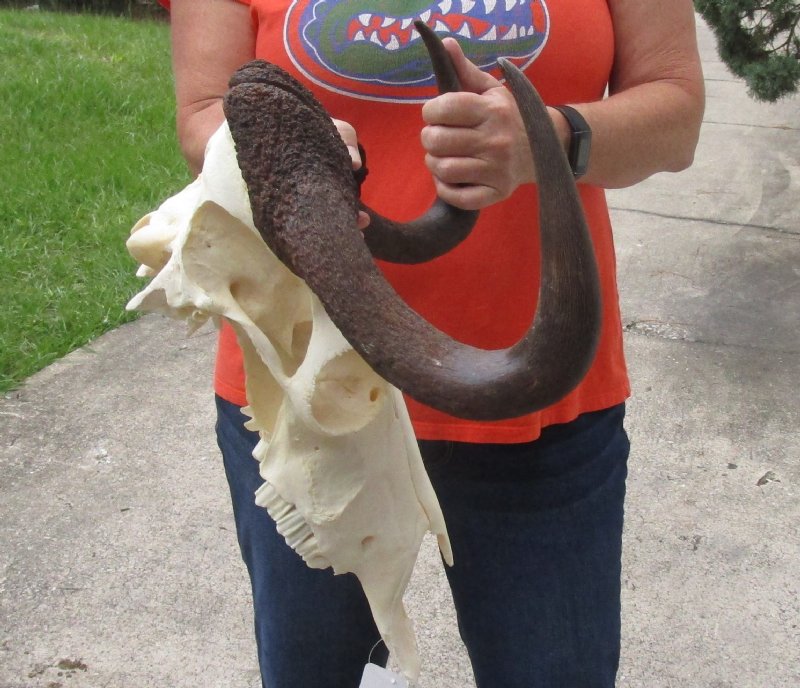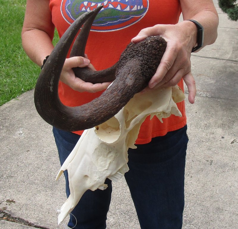 African Black Female Wildebeest Skull and 15" Horns - $56