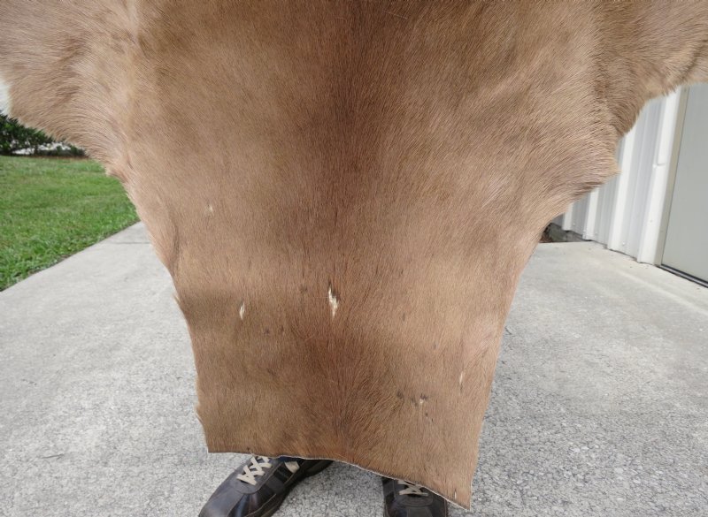 Our commercial grade African Impala Skin rugs and Impala Hides, also called antelope skins, hides, vary in size and are nice Grade B quality with natural imperfections (these are real skins and may have some bug bites, scratches, few tiny holes, some repair stitching, few areas of thinning hair). The average Impala skin, antelope skin, measures 37 inches by 48 inches, not including the tail. These pretty reddish brown impala skins are perfect for decorative rugs in a rustic cabin or den, furniture throws, and Impala wall decor. Impala skins are also used to make animal skin pillows, purses, and other taxidermy craft products.