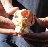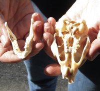 South African Spring Hare skull (Pedetes capensis) measures approximately 3-1/2 inches long and 2 inches wide.  The South African springhare or springhaas is not actually a hare, but a member of the order Rodentia.  It is one of two living species in the genus Pedetes, and is native to southern Africa.  The springhare resembles a small kangaroo (though unrelated) with well-developed hind legs, which allow it to leap over 2 m (6 ft 7 in).  It is for this ability that it gets its name.  All of our springhare skulls are commercial grade and imperfect.  They will have imperfections due to the natural aging process and living in the wild--scars, blemishes, rub areas, broken/missing teeth, bug bite marks, etc. - Jaw not glued. Review all photos. These springhare skulls have been cleaned and cleared for legal entry into the United States by the U.S Fish and Wildlife Service and U.S Customs.